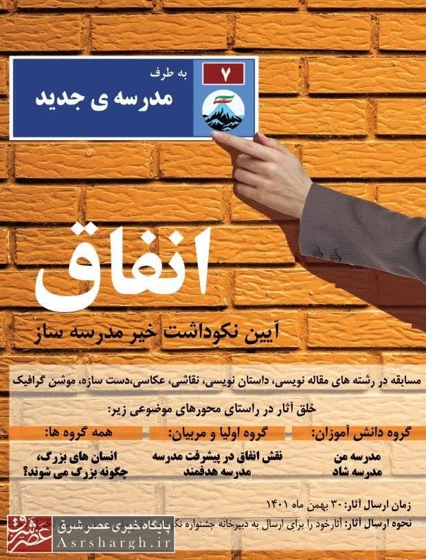 طاولی تصریح کرد: موضوعات گروه دانش‌آموزان طی دو محور «مدرسه من» و «مدرسه شاد» و گروه اولیا و مربیان موضوعات «نقش انفاق در پیشرفت مدرسه» و «مدرسه هدفمند» است؛ همچنین موضوع برای همه عموم مردم «انسان‌های بزرگ، چگونه بزرگ شده‌اند؟» در نظر گرفته شده است.