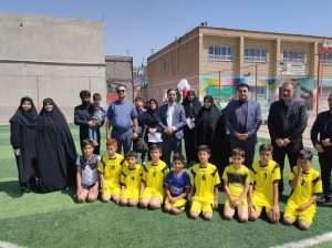 در حاشیه مراسم دانش آموزان مدرسه به صورت نمادین به برگزاری مسابقه فوتبال در زمین چمن پرداختند.