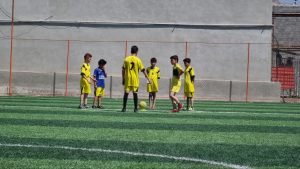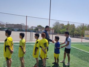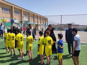 در حاشیه مراسم دانش آموزان مدرسه به صورت نمادین به برگزاری مسابقه فوتبال در زمین چمن پرداختند.