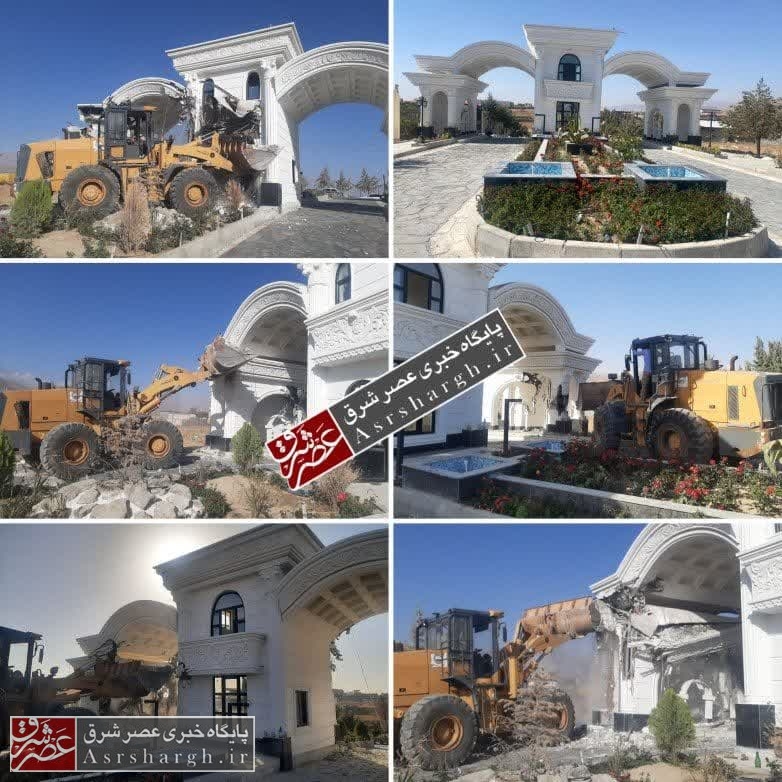تخریب سردرب لوکس و لاکچری غیرمجاز در حریم شهر دماوند+تصاویر