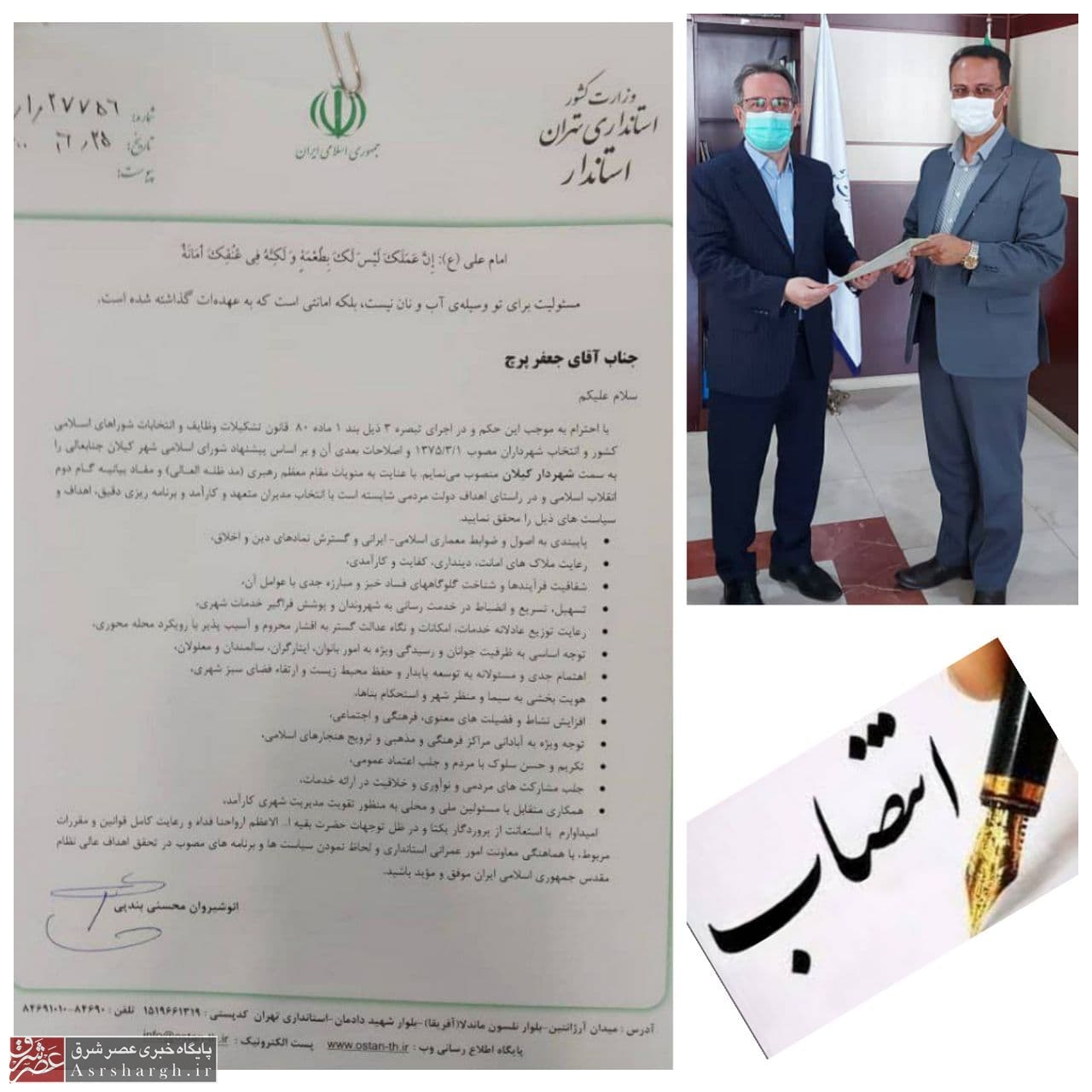 «جعفر پرچ» با حکم استاندار تهران به عنوان شهردار کیلان منصوب شد.