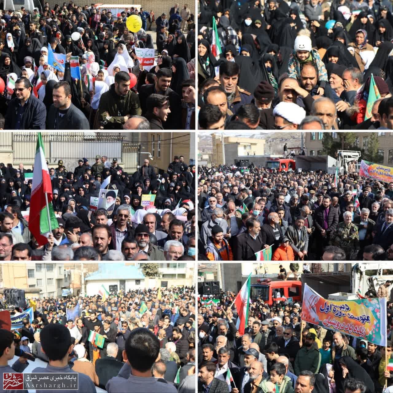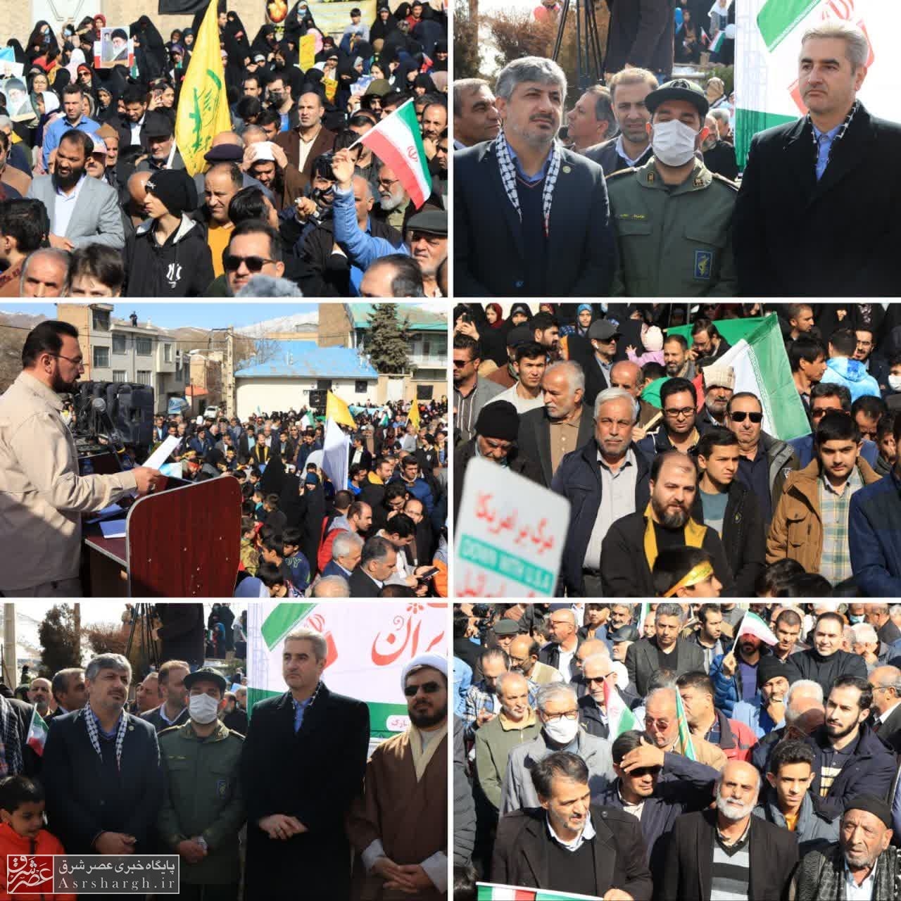 راهپیمایان با سردادن شعارهای «مرگ بر آمریکا»، «مرگ بر اسرائیل»، «مرگ بر آل سعود خائن»، «راه امام شهدا زنده است – نهضت ما همیشه پاینده است»، « ۲۲ بهمن ماه نشانگر اسلام است – روز بیعت و میثاق با رهبر و امام(ره) است» بار دیگر شور انقلابی خود را به نمایش گذاشتند.