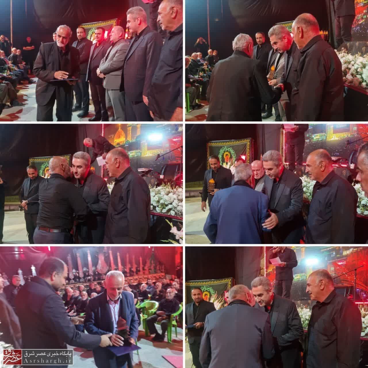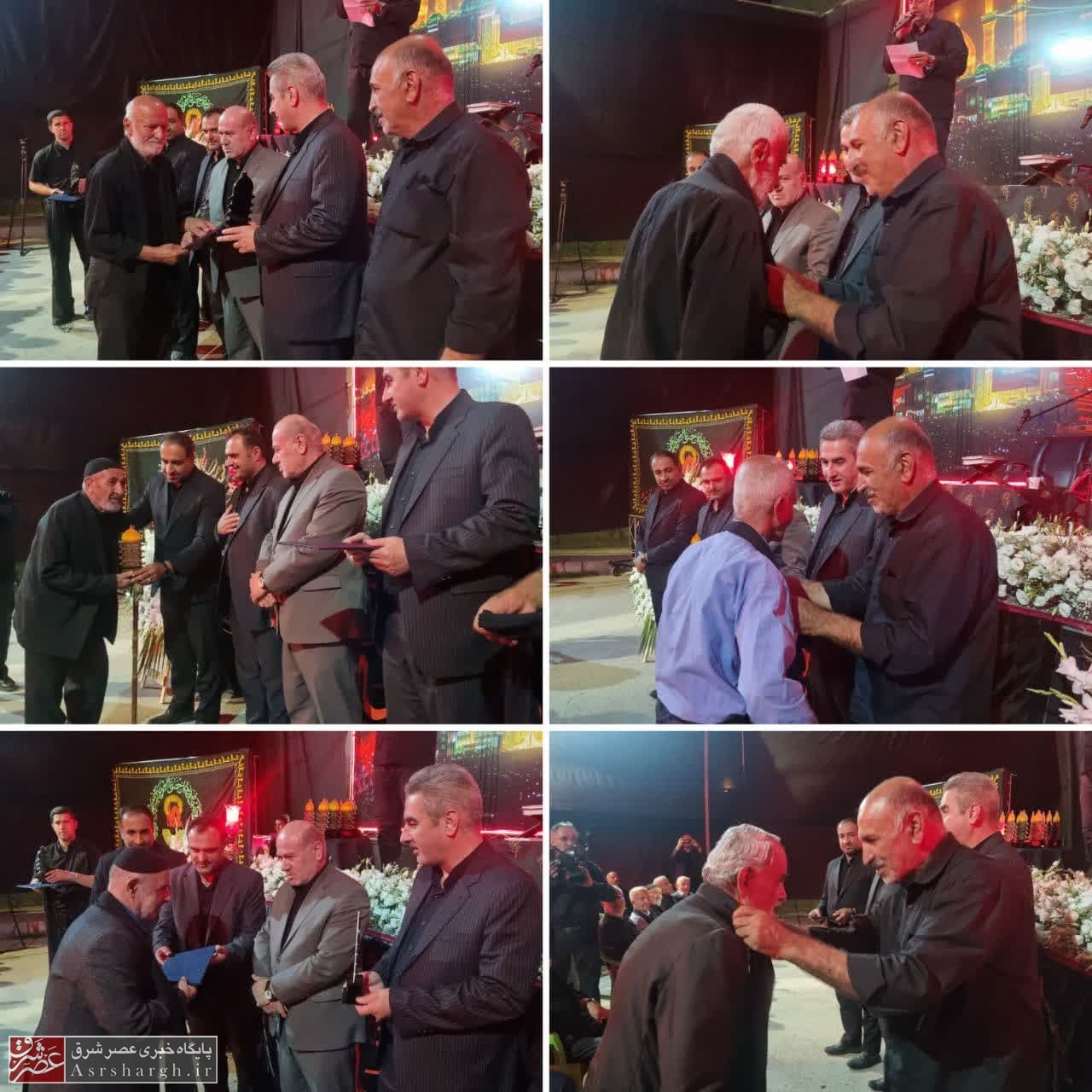 در این آیین، از ۱۵ پیرغلام اهلبیت شامل ذاکرین، آشپزها، چاییریزها و … با اهدای تندیس و لوح تقدیر به عمل آمد.