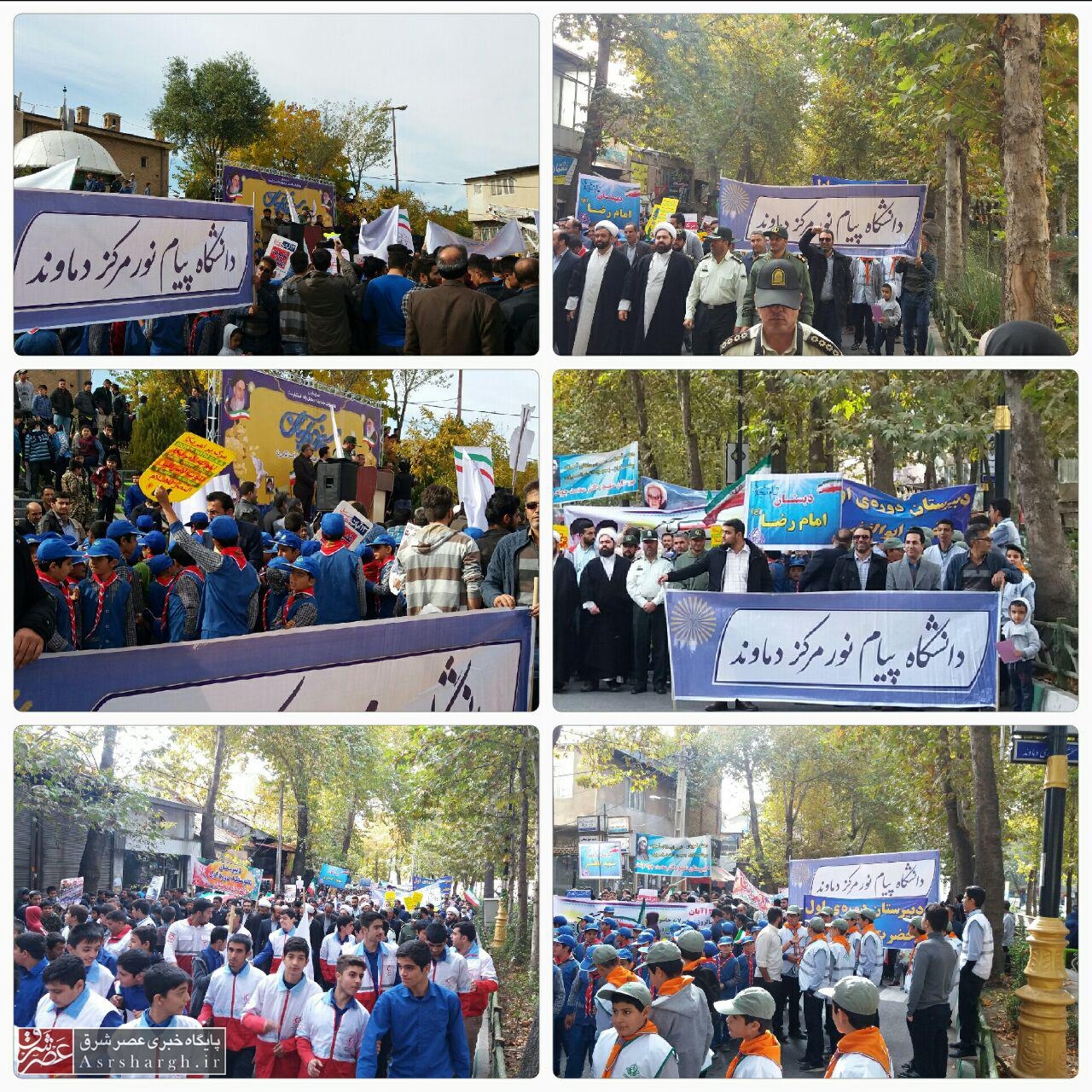 به گزارش پایگاه خبری عصر شرق، هزاران نفر از دانشآموزان مقاطع مختلف تحصیلی در شهرستان دماوند یوم الله ۱۳ آبان را در آستانه ۴۰ سالگی انقلاب اسلامی گرامی داشتند.