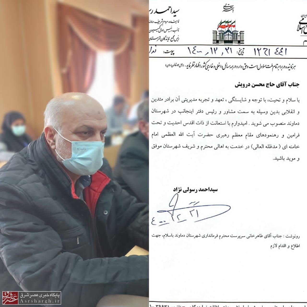 به گزارش پایگاه خبری عصر شرق، «محسن درویشی» با حکم سیداحمد رسولینژاد، نماینده مردم شریف شهرستانهای دماوند و فیروزکوه در مجلس شورای اسلامی به عنوان مسئول دفتر دماوند و مشاور این مقام مسئول منصوب شد.