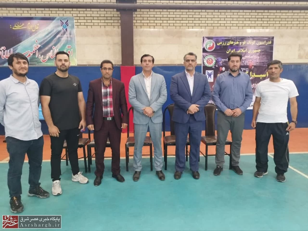 این مسابقات بهمناسبت گرامیداشت هفته دفاع مقدس با حضور چگینی و یزدانی رئیس و معاون اداره ورزش و جوانان شهرستان دماوند، خادم الرضا نایب رئیس سبک اسپدا کونک فو در حال برگزاری است.