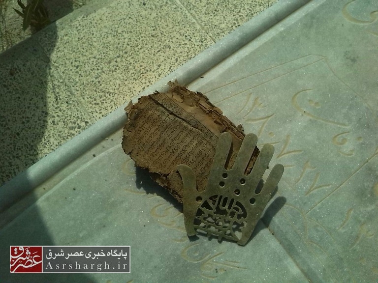 معجزه تکان‌دهنده در قبرستان روستای جابان دماوند/ یک جلد قرآن قدیمی و دست فلزی پنج‌تن آل‌عبا (ع) پیدا شد+ تصاویر