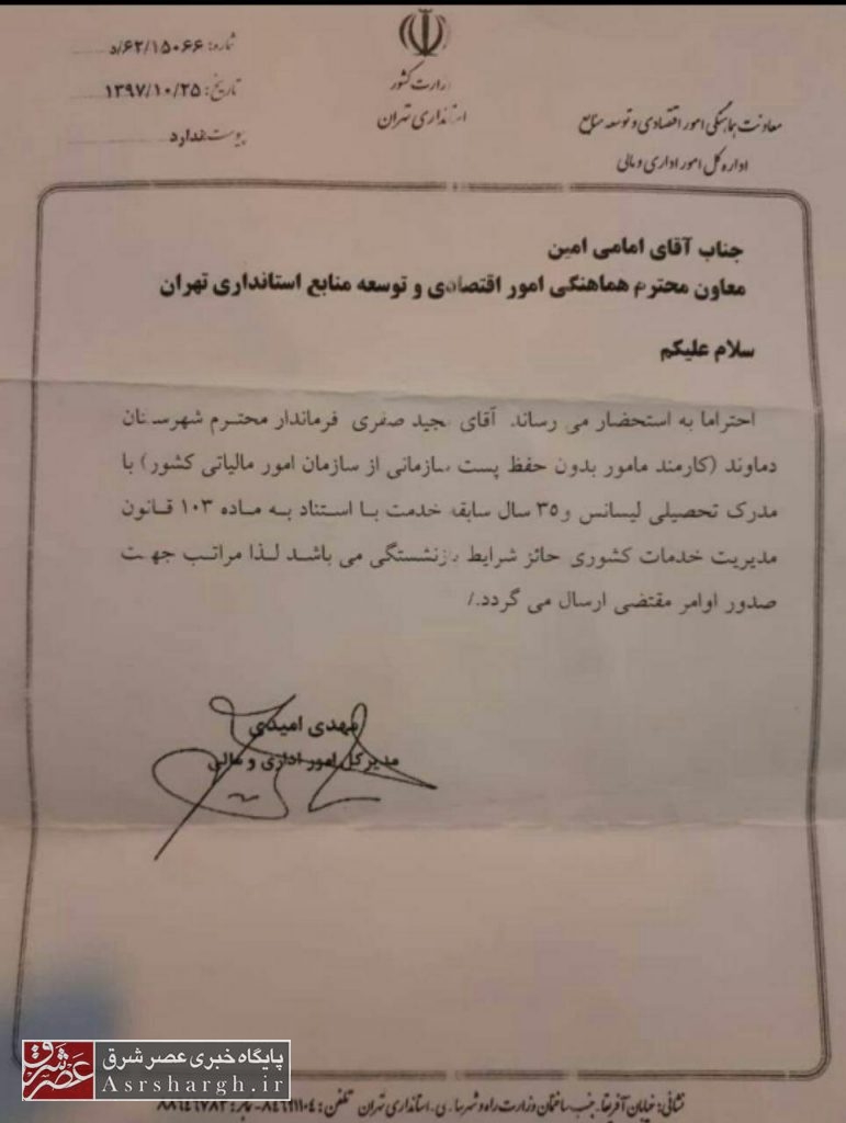 مجید صفری ظهر امروز در حاشیه نشست شورای اداری شهرستان دماوند در گفتوگو با خبرنگار پایگاه خبری عصر شرق در واکنش به انتشار نامه بازنشستگیاش اظهار کرد: آنچه منتشر شده صحت دارد و عین قانون است.