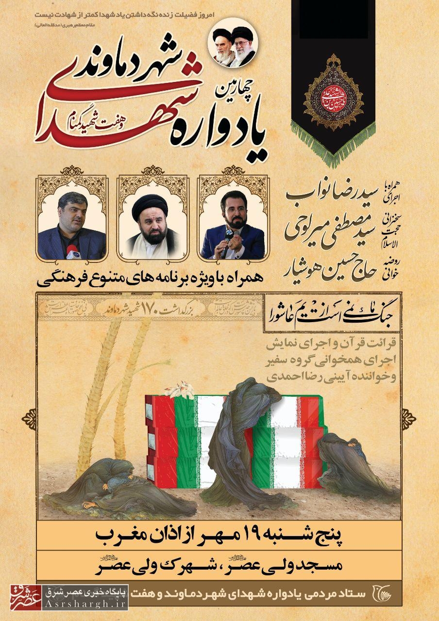 چهارمین یادواره ۱۷۰ شهید شهر دماوند و هفت شهید گمنام همراه با اجرای برنامههای متنوع فرهنگی برگزار میشود.