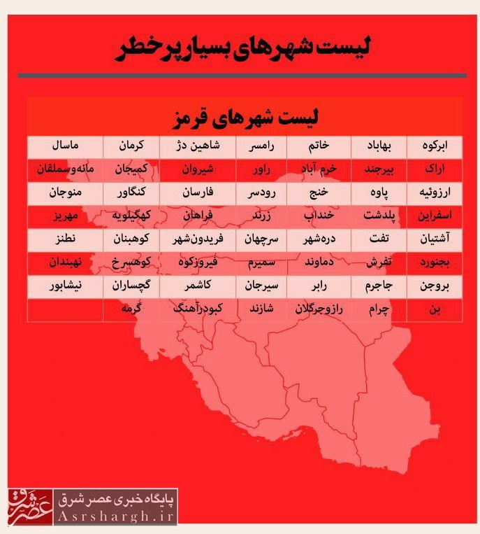 به گزارش پایگاه خبری عصر شرق، بر اساس آخرین به روزرسانیها، تعداد شهرهای با وضعیت قرمز در کشور از ۳۴ به ۵۵ و تعداد شهرهای با وضعیت نارنجی از ۶۹ به ۸۴ شهر افزایش یافت.