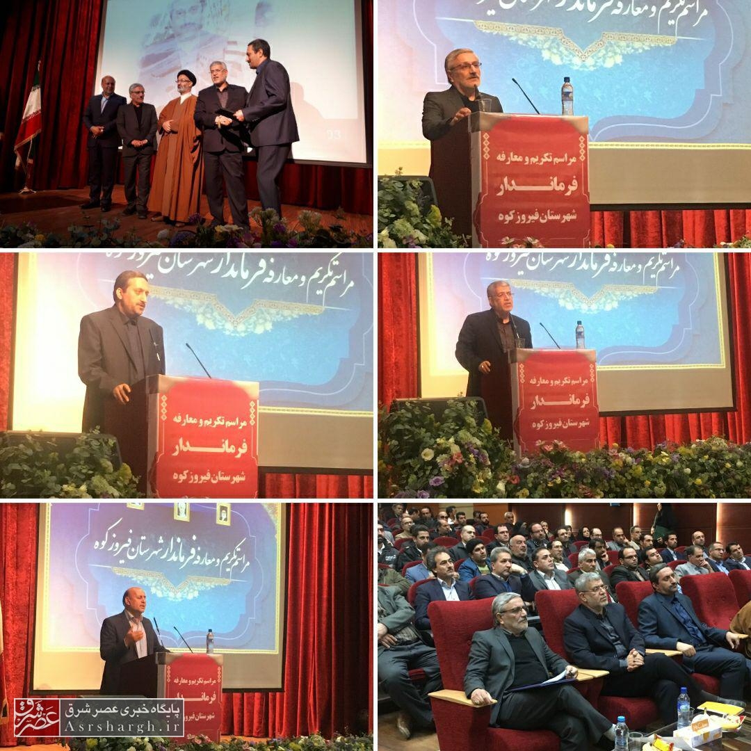 در سایه الطاف خدا، این روزها که در کنار هم گذشت،در لباس خدمت و همت و تلاش به این مردمان شریف، وظیفه، ثمر بخش و موثر په سرانجام رسید؛ و امروز که تقدیر، ورق را به رفتن رقم زده است، بسی شایسته است به پاس تلاش ها و زحمات مستمر شما در راستای توسعه و پیشرفت همه جانبه ی شهرستان فیروزکوه ، نهایت سپاس را خدمت حضرت عالی (و خانواده ی محترم که در این تلاش و به بار نشستن آن یار و همراه شما بوده اند) ابراز داریم.