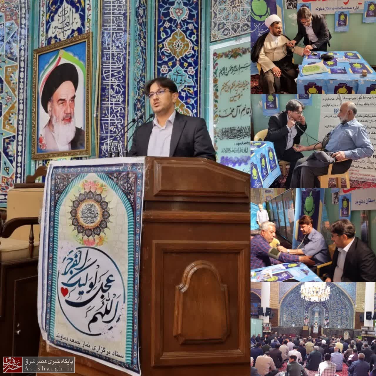 ضمنآ در این مراسم عبادی سیاسی، میز خدمت اداره بیمه سلامت شهرستان دماوند آماده خدمت به شهروندان و صدور بیمه رایگان دهک های یک تا پنج درآمدی و سایر خدمات سازمان بیمه سلامت بودند.